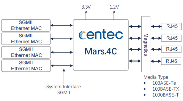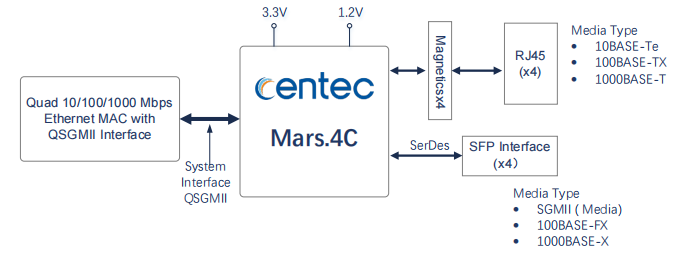 圖1: CTC21104 (Mars.4C)PHY芯片