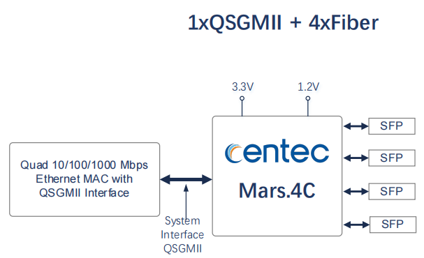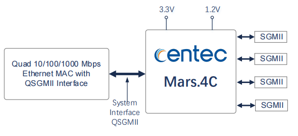 芯片每四個獨立的收發(fā)器支持1路QSGMII輸出,減少PCB走線。所有的收發(fā)器可以通過同一QSGMII同時與MAC進行通信。